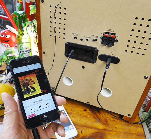 昔のジュークボックスさながらに音と光の両方を楽しめるように作られ、サイズも奥行き31.5cm、幅25cm、高さ46cmとコンパクトです!